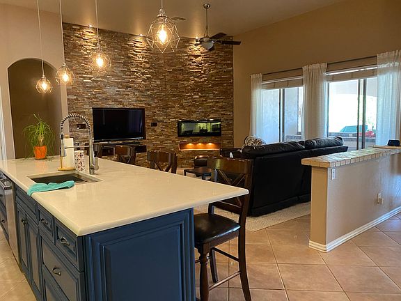 HORSE PROPERTY - Gorgeous 4 bedroom, 3 bathroom house on over an acre of horse property. Updated kitchen with newer quartz counters, cabinets, sink and appliances. Large tile throughout except carpet in the bedrooms. Large master shower and walk in closet. Large laundry room. Washer/dryer included. Newly painted exterior and new roof. Oversized garage with extra space for storage or home gym. Huge patio with built in bar and ceiling fans opens up to a very large yard that includes an RV gate, fire pit, shed/tack room and plenty of room for your horses to roam. House is beautiful. Lots of nice touches you won't find in most rentals. All taxes, front yard maintenance and irrigation water included in rent price. Ready for move in 10/1.