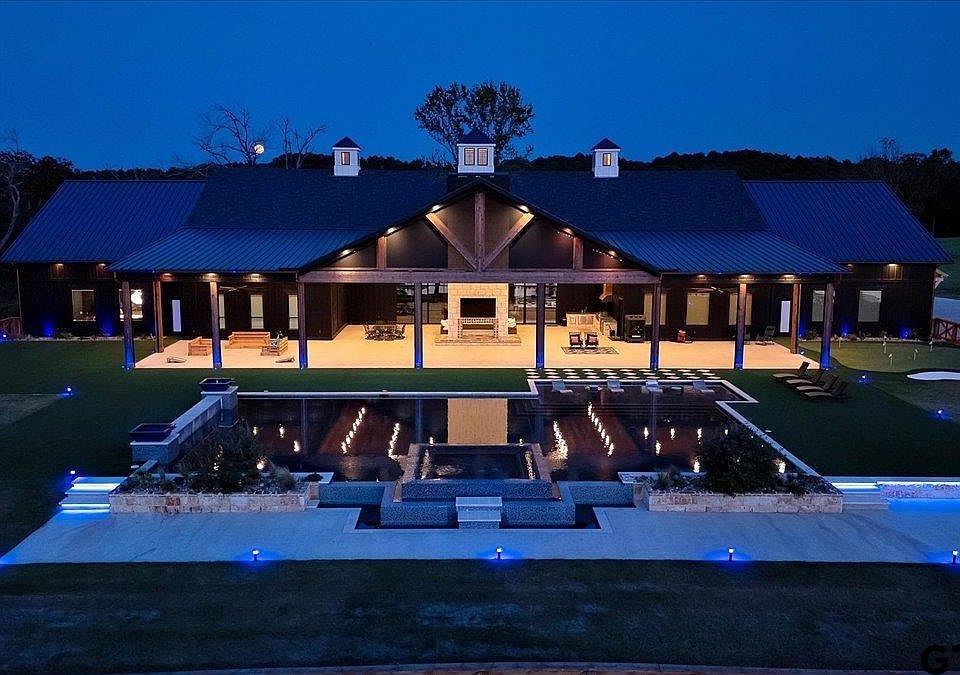 Welcome to Oak Creek Ranch. Drive through the beautiful double gated entrance and continue on down the tree lit drive that leads you to your own private 20 acre lake. Continue on across the bridge, around the lake to this stunning 4 BR - 7 BA (4 full + 3 half) home, sitting on 333 acres, which combines timeless Texas charm with refined luxury. Inside, soaring ceilings with stunning light fixtures throughout, enhanced by premium surfaces and state of the art amenities. Spacious master bedroom and bath with an extra large walk-in closet. The gourmet chefs kitchen provides premium appliances, an oversized island and cozy bench seating. Gracious formal/informal living and dining spaces flow effortlessly for both daily living and entertaining on a grand scale. Outdoor living is equally impressive, with over 6000 feet of covered porches, outdoor kitchen, a large, double-sided fireplace, and a resort style infinity-edge pool with fountains and spa overlooking the lake, offering breathtaking sunsets and views of the coastal meadows and scattered trees across the hilltops. If you would like to enjoy more majestic views, sounds of nature and tranquility, there is 99 acres that includes Mt Sinai, one of the higher points in Smith County, on the Ranch. Whether it's great deer hunting, fishing, hiking, golfing, or just relaxing, this is as good as it gets. It is more than a home. It is a private retreat for those who appreciate the finest things in life, don't miss your opportunity to make it yours!