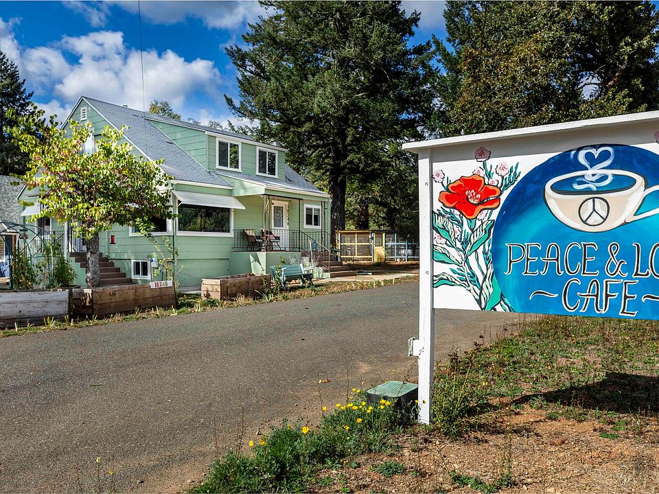 Bed/Breakfast, Airbnb, miniature golf course, small Motel, RV Park, Barber /beauty shop, general store, groceries, rental service store /yard, music store/studio?. Possibilities are Endless on this Rural commercial zoned 3.11 acre parcel with it's own Creek in back. Elegantly remodeled with old school charm and original solid wood floors. It's a beauty! The light filled rooms sparing no expense. The Blue house can be used for rental, a bakery or built into a 2 bedroom. It is all new. The warehouse building is spacious and long and can house many different money-making dreams. Behind the long building is plenty of room to park all your family or turn into a RV park or any business. This is a well-traveled road with many passer By's and then quiet in the evening. Come on by SUNDAY 12-3pm for a visit-Bites, drinks and tea in the peaceful Garden...