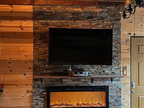 This rustic 4-bedroom, 2.5-bath home features modern upgrades including heated floors, a geothermal furnace, quartz countertops, and stone and wood walls. The kitchen boasts hardwood cabinets, a copper farm sink, and a breakfast bar, while the living room includes a stone wall with a pellet stove and handmade mantel. The main bathroom offers a spa-like atmosphere with knotty pine walls and a walk-in shower, and two bedrooms are on each floor, with one upstairs bedroom convertible to an office. The backyard includes a 28-foot above-ground pool, large deck, and bonfire sand area, located just miles from Rt 376 for convenient commuting.