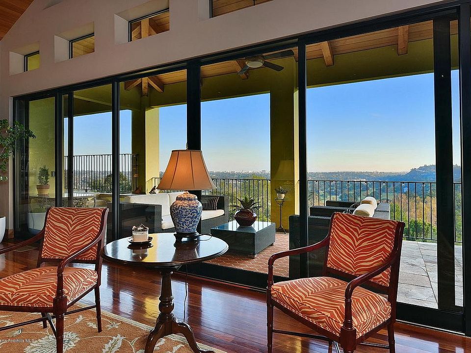 This custom built 2008 modern home offers close to 3,600 sq ft with panoramic views on a lot of close to 20,000 sq ft. The main floor has a living room, dining room and kitchen with access to the outdoor dining and bbq areas and close to 1,200 sq ft of deck areas. The living room with fireplace boasts a Hemlock tongue and groove beamed ceiling. Lyptus floors adorn the upper level, 9' Sapele hardwood doors run throughout, as well as Anigre baseboards. The gourmet kitchen offers stainless appliances, granite counters, center island, walk in pantry and Anigre built ins. The main level master suite offers vaulted ceiling, Fossil stone fireplace and bath, built ins, vanity area, tub and shower and walk in closet. Main level laundry room facilitates one level living. The lower level offers a family room with Mahogany built ins, fireplace and two additional bedrooms and baths. A wrap around patio leads to the pool and spa area with gardens. There is a pool close bath with pebble stone floor. Additional features include speakers in and out, multiple ceiling fans, plantation shutters, potting area, two tank less water heaters, water softener and filtration systems, two HVAC systems, security system, interior sprinklers, 3 car attached garage and slate decks.