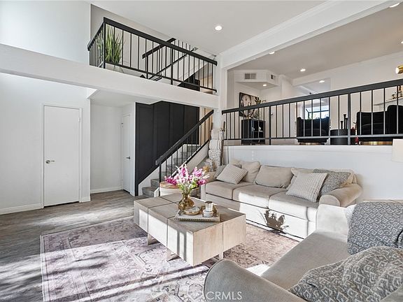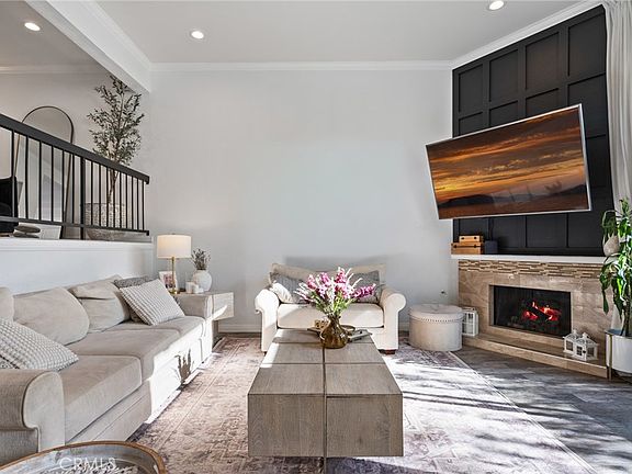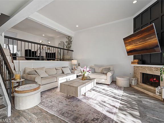 Stylish and spacious 3-bedroom, 2.5-bath residence ideally located near shopping, dining, and conveniences. The open split-level layout features a bright living room with soaring vaulted ceilings, an elegant black-accent fireplace wall, and wide-plank flooring flowing to a private front patio overlooking the community pool. The remodeled kitchen showcases shaker cabinetry, quartz countertops, brass hardware, and stainless appliances, opening to a chic dining area with plantation shutters. The primary suite offers dramatic vaulted ceilings, a custom accent wall, and a beautifully remodeled bath with dual marble vanities. Additional highlights include crown molding, recessed lighting, and a direct-access two-car garage. Located within the highly rated Palos Verdes School District, this home combines quality, comfort, and incredible Peninsula value.