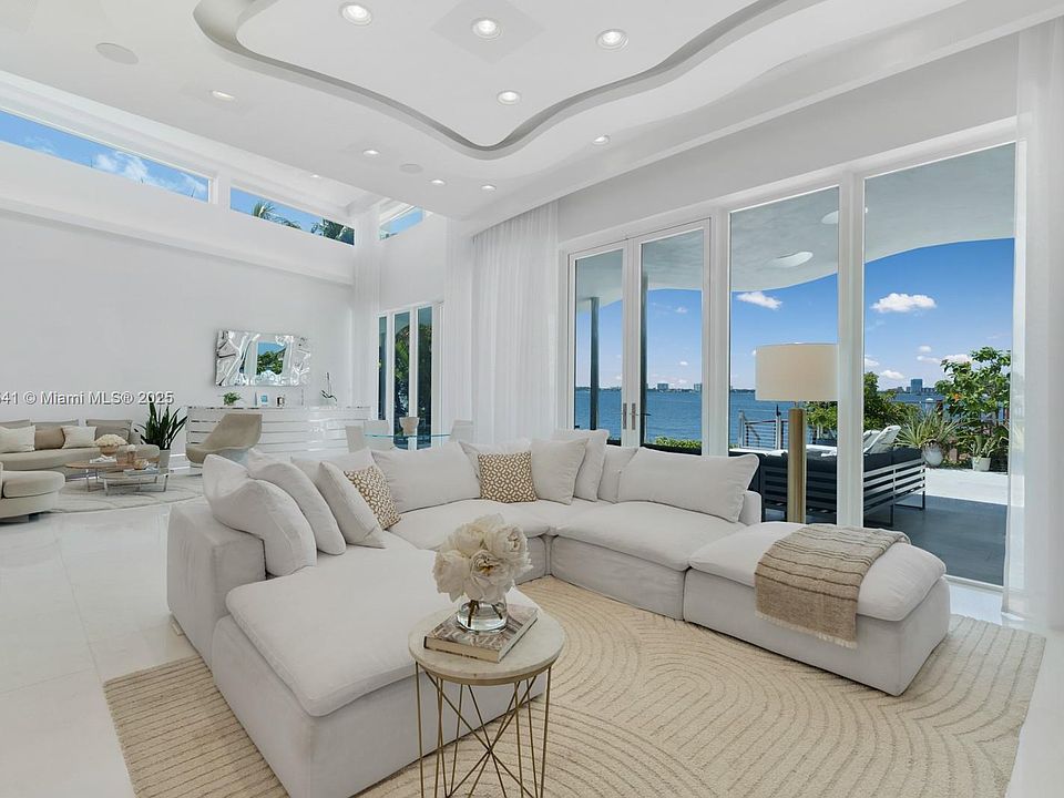 Step Inside With Me! This modern waterfront home on the gated island of Biscayne Point unveils sun-drenched interiors with unobstructed open-bay views. Thoughtfully designed, all social areas and guest spaces are arranged on a single level. Past the foyer, soaring double-height ceilings introduce bright living areas and a sleek specialty bar. The Mia Cucina gourmet kitchen highlights an oversized island with ample storage and boasts Wolf & Sub-Zero appliances. The spacious primary suite enjoys a private setting with a spa-inspired bath and sweeping water views. Outdoors, entertain effortlessly with a Summer Kitchen, infinity pool, hot tub and deep-water dock. Enhanced with advanced security, LED lighting & automation throughout, all just minutes from Bal Harbour, fine dining, & the beach.