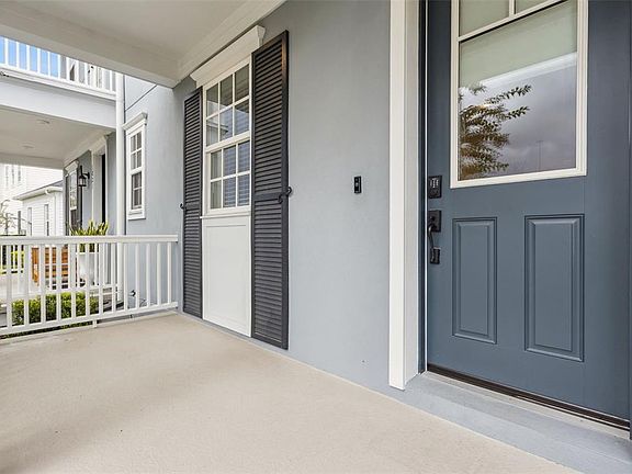 Like New, Former Model! This immaculate 3 bedroom 2.5 bathroom townhome is located in Celebration's newest neighborhood, Island Village. You will love the spacious open floorplan! Upgraded wood laminate floors throughout the first floor. The Kitchen features 42" cabinets with crown molding in a warm Maple/Rye finish with matte black hardware, Glass door accent cabinet, tiled backsplash, Quartz counters, and Stainless-Steel appliances as well as Pendant lights over the large island. The kitchen flows seamlessly into the Great Room and Dining Area. There are sliding doors and a French door out to the Private courtyard and covered lanai with pavers, so you can expand your entertaining outside! Upstairs you will find your primary suite with Double Walk-in Closets, with new Custom California Closet systems. The ensuite primary bathroom has double sinks and a frameless glass enclosed shower. The secondary bedrooms share a Jack and Jill bath with double sinks and also both boast the upgraded closet systems, maximizing your storage space! The Upstairs Laundry room has upper cabinets and a front-loading washer/dryer that convey. Other highlights include: 5 1/4" baseboards, upgraded 5 panel doors with lever handles in matte black, Gutters, a first-floor powder room, the upgraded closet systems throughout—including in the Pantry! Custom Window Treatments and blinds. Detached 2-car rear entry garage (with epoxy finished floor) which is connected to home by covered walkway. And don't forget the covered front porch! Situated just steps away from the new Island Village Elementary School, this home is perfect for families seeking a close-knit, vibrant community. This home offers one of the lowest Townhouse HOA fees in all of Celebration. Enjoy Island Village amenities including a Zero entry pool with lounge areas. Fitness Center with app-enabled indoor fitness station. Resort-style clubhouse with screened in lanai. And you also have easy access to Celebration’s array of parks, community events, and all the magic of nearby Disney attractions. Don’t miss the opportunity to call this stunning property your home!