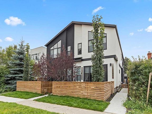 ---------- Open house Sunday October 05, 2025 from 1:00 p.m. until 3:00 P.M. --------- Check out this thoughtfully designed, close to 1,750 sq ft of living space, high quality finishing town-home in the heart of Marda Loop, just minutes away from downtown. Built with privacy and sound insulation in mind , this home features superior party wall system between units. As you enter the main floor showcases 11 ft ceiling, inviting open concept layout. Vinyl plank flooring, a designer built entry unit, and a pantry with quartz counter top. The living room is spacious featuring a built in wall unit, sleek tile, and a Bluetooth enabled electric fireplace. The kitchen is just as equally impressive, boasting a large island with quartz counter top, ideal for entertaining, ample soft- close cabinetry, stainless steel appliances. The large south facing sliding door brings in rays of sunshine and light through out the day, tastefully covered with Hunter Douglas honeycomb shades and floor to ceiling blackout drapes for privacy professionally installed by Normandeau. It opens on to a fenced, cozy yard leading to a single detached garage.This floor is completed by a spacious guest half bath. Upstairs, the primary bedroom is a true retreat, with vaulted ceilings, double door his and hers closets, large windows with professionally installed electric blackout honeycomb shades. The barn door leads into a spa-like en-suite with heated flooring, double sink vanity, quartz counters, skylight, oversized tiled shower and dual shower heads. The second large bedroom also has it's own en-suite and skylight, plus manual honeycomb shades. The fully finished basement boasts a bright family/ flex room. A third spacious bedroom with a walk-in closet and a full bath. THIS HOME COMES WITH COUNTLESS UPGRADES- A/C, high efficiency furnace, humidifier, thankless hot water on demand, radon extraction sump pump, built-in speaker system, light dimmers in master bedroom, smart thermostat (ecobee), bathroom fan timers, kitchen and master bedroom lights can be manged through smartphone. This exceptional home offers the best of urban living in an ideal location. This is the one you have been waiting for. Book a showing today.