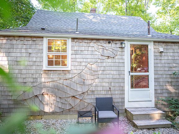 As seen on HGTV's Houses With History! This West Barnstable gem combines Cape charm with thoughtful updates. The kitchen stands out with custom copper and quartz counters, farmer's sink, and Bertazzoni gas range, while the spacious living room offers a cozy gas fireplace. The first-floor primary bedroom and stylish tiled bath make everyday living easy. Upstairs, two bedrooms with shiplap ceilings and custom rope beds capture classic Cape style. Unique details like painted wood floors, volcanic wood ceilings, brick-floored mudroom and handcrafted lighting add warmth and character. Step outside to a private yard with patio, whimsical whale mural, and an outdoor shower--the perfect spot after a day at the beach. Close to shops, trails, and sandy shores, this home is ideal for year-round living or as a proven Cape Cod rental.