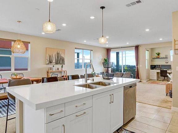 Welcome to the beautiful community of Millenia offering parks, promenades, shops, restaurants, local market, and so much more! ! Gorgeous West facing 4 bed 3.5 bath CORNER tri-level rowhome with full bed and bath on first floor! Enjoy the views of the Ocean to Point Loma! Modern home with stylish interior, this home features designer light fixtures, large open living space with tons of natural light. Upgraded kitchen with large island, crisp white cabinetry, quartz counters, custom designer back splash and stainless steel appliances. 3 bedrooms and 2 full baths on third floor, large primary suite with walk in closet, spa like en-suite bath with large soaking tub and dual vanity. Additional features include an in-unit washer/dryer, a 2-car attached finished garage with epoxy floor, racks for additional storage space, outlet for electric charger and PAID FOR SOLAR for a low monthly electric bill. Resort style amenities include a sparkling pool, spa, and playgrounds. No matter where you live within this unique urban oasis you’re within easy distance to all that it has to offer. Across from Otay Ranch Town Center, new Common Theory Public House Restaurant and Sura Korean BBQ opening soon, close to Otay Lake and trails. Don’t miss out!