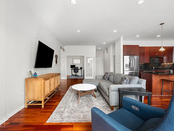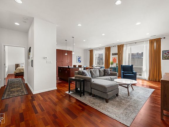 Located in the heart of Bucktown just steps from the 606 Trail and Blue Line, this exceptional extra-wide 2 bedroom + den, 2 bathroom condo offers nearly 1,700 square feet of thoughtfully designed living space that balances style, comfort, and functionality. The open concept layout features a chef's kitchen with solid oak cabinetry, granite countertops, stainless steel appliances, and a large island that flows seamlessly into the expansive living and dining area, complete with hardwood floors and direct access to a private west-facing terrace perfect for morning coffee or evening entertaining. A desirable split-bedroom floor plan ensures privacy, with both bedrooms offering custom walk-in closets, while the oversized primary suite impresses with a spa-like bath boasting dual vanities, soaking tub, separate shower, and ample storage. A versatile den provides flexibility for a home office, guest space, or creative studio, and the home is further enhanced by rare same-floor storage, two side-by-side garage parking spaces, and the convenience of a boutique elevator building with just 16 units. Low HOA assessments, pet-friendly policies, and proximity to Bucktown's vibrant mix of restaurants, shops, and cafes make this an ideal home for buyers seeking space, sophistication, and unbeatable location in one of Chicago's most dynamic neighborhoods.