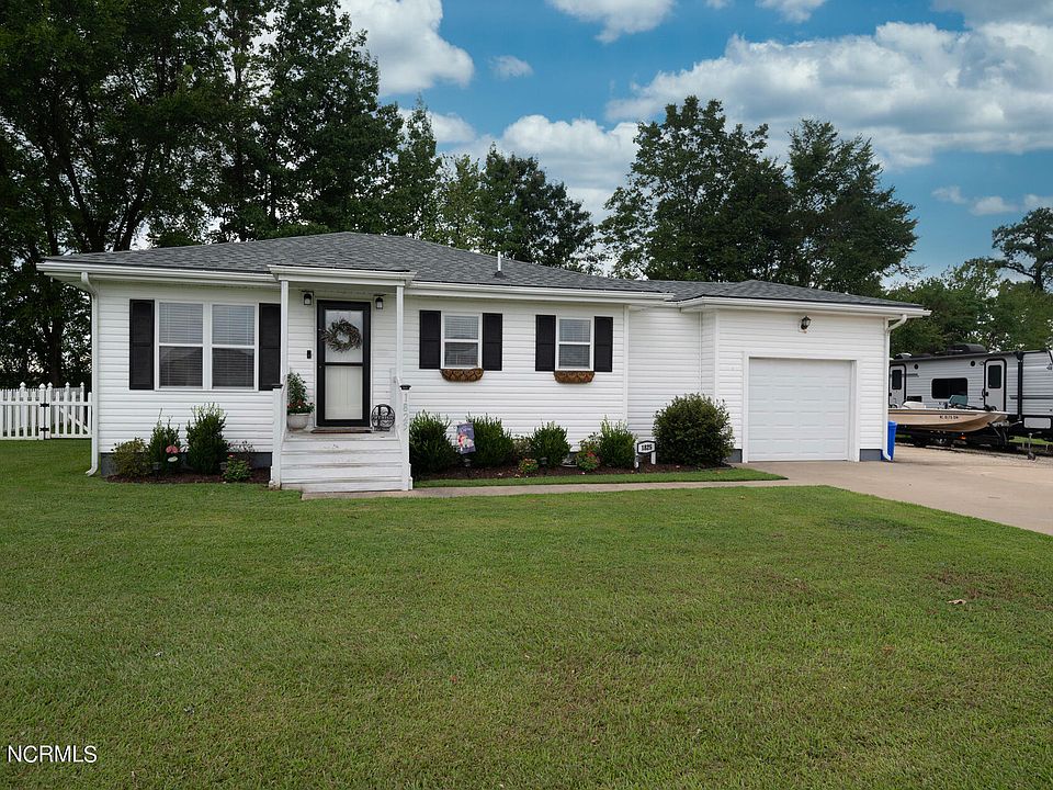 This Adorable, updated home is awaiting its new owners! Sitting on one acre with an extended driveway gives great opportunity for an extra garage or toys! The current owners have taken great care in updating the entire bathroom complete with a new vanity, toilet, light fixtures, tub and tiled shower walls! Updated LVP flooring throughout bedrooms, hallway and living room. New roof installed in 2020. Large eat in Kitchen with plenty of counter space and beautiful tile floors. Attached one car garage and a vinyl partial fence in the backyard. Home and vinyl fence will be pressure washed Sep. 1st.