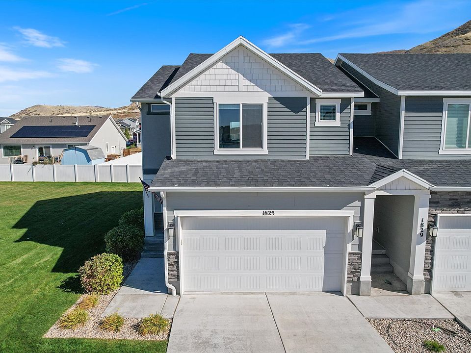 Beautifully maintained row-end townhome with a bright, modern interior and plenty of space to spread out! Built in 2020, this home offers 4 bedrooms, 2 full bathrooms, and over 2,100 sq. ft. of comfortable living. The open-concept kitchen and living area are perfect for entertaining, featuring sleek countertops, stainless steel appliances, and a stylish dark tile backsplash. Large windows bring in tons of natural light, while the spacious layout keeps everything feeling airy and inviting. Enjoy peaceful evenings on the patio overlooking the beautifully kept common lawn, or take a stroll to the nearby playground and open green space right next door. Thoughtful touches throughout-like durable flooring, neutral tones, and modern finishes-make this home move-in ready and easy to love. Conveniently located near schools, parks, and mountain trails, this home combines modern living with a welcoming community feel.