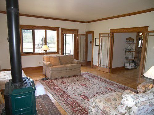 - Fireplace features: wood stove