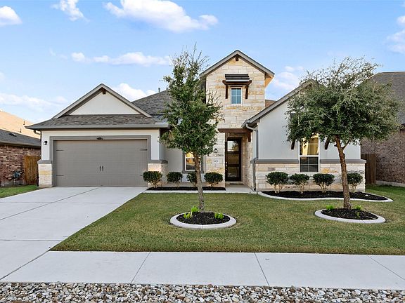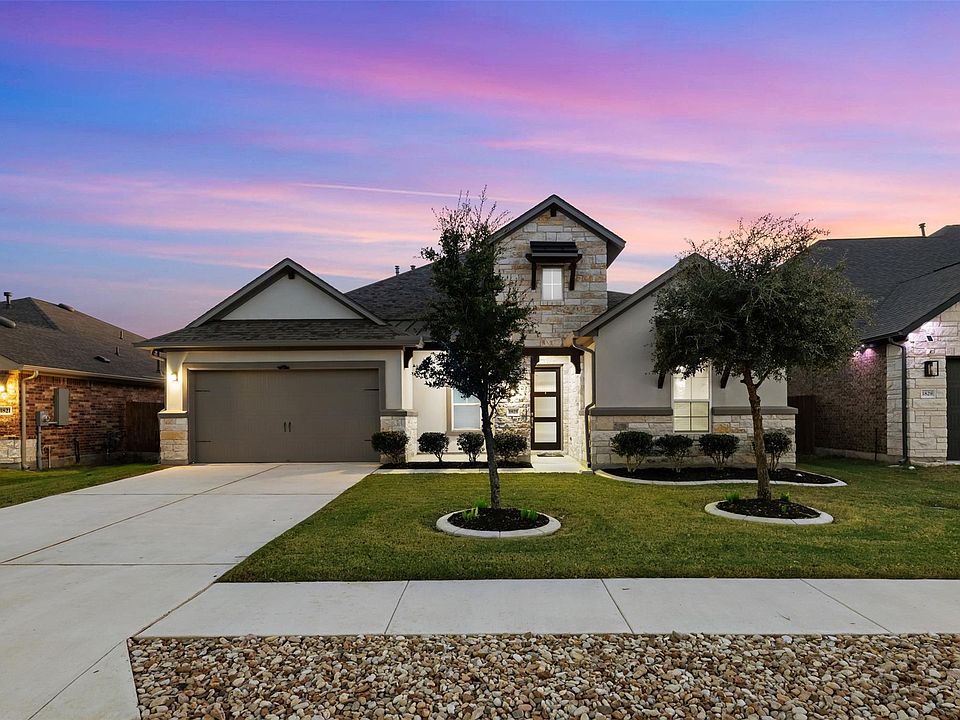 Better Than New – Move-In Ready Dream Home! Welcome home to this stunning GFO-built single-story residence that truly has it all! This vacant and move-in ready home offers a spacious open-concept layout perfect for modern living and entertaining, featuring a seamless flow between the dining area, kitchen, and living room. The isolated primary suite is a luxurious retreat, showcasing elegant tray ceilings and a spa-like bath complete with dual sinks, a freestanding soaking tub, and a mud-set shower. You’ll love the two walk-in closets, including one with direct access to the oversized laundry room—a thoughtful touch that makes daily living a breeze. A private dedicated office provides the ideal space for working from home, while two generously sized secondary bedrooms share a full bath. There’s also a convenient guest half bath for visitors. The grand culinary kitchen is a showstopper with its oversized island, breakfast bar, and abundant cabinetry—perfect for any home chef. Throughout the home, enjoy 10-foot ceilings, 8-foot doors, and beautiful finishes that elevate every space. Step outside to a covered patio with views for miles—the perfect spot to take in breathtaking sunsets. The yard features a full sprinkler system (front and back) and full gutters, ensuring easy maintenance. There’s nothing left to do but move in and start living your best life!