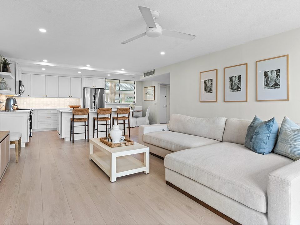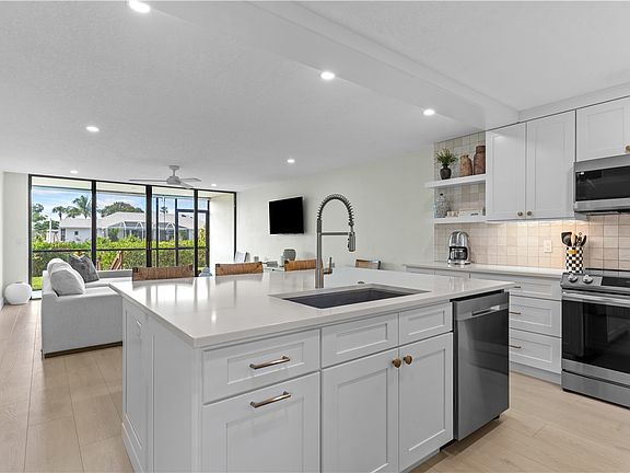 Beautifully renovated first-floor condo, partially furnished + just steps from the dock! Open concept layout, 2025 LVP flooring, gorgeous kitchen w/ large island and quartz countertops. Designer finishes throughout, hand-laid vertical tile shower & serene views. This low-maintenance “lock-&-leave” retreat is perfect for seasonal living or a primary residence—light, bright + move-in ready for effortless coastal living. Sizes are approx/subj to error.