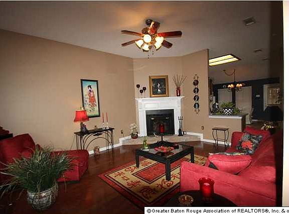 MOVE-IN READY! 3BR/2BA SUPER CLEAN. KITCHEN HAS ISLAND WITH GRANITE TOP, CATHEDRAL CEILINGS AND BUILT IN MICROWAVE. LIVING ROOM HAS WOOD FLOORING AND CORNER WOOD BURNING FIREPLACE WITH BRICK HEARTH. MASTER BATH HAS HIS/HER CLOSETS. BACK YARD IS LANDSCAPED AND INCLUDED A 12X12 COVERED PATIO.