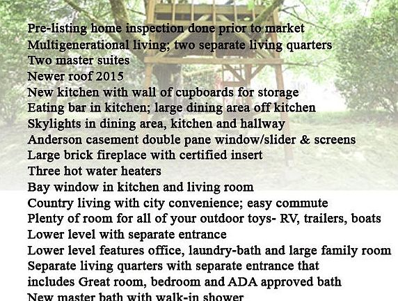 Looking for 2nd living quarters? Private park-like setting on .9 Acres. Turn Key ready to move in. Newer roof, paint, carpet, kitchen, w/ skylights and bay window and extensive cabinets. Newer bathrooms. Three skylights, two bay windows, Separate entrance to in-law ADA quarters. Finished lower level w/exterior door. 3.2 miles to Oregon City. RV parking, shop, small barn and dog run.