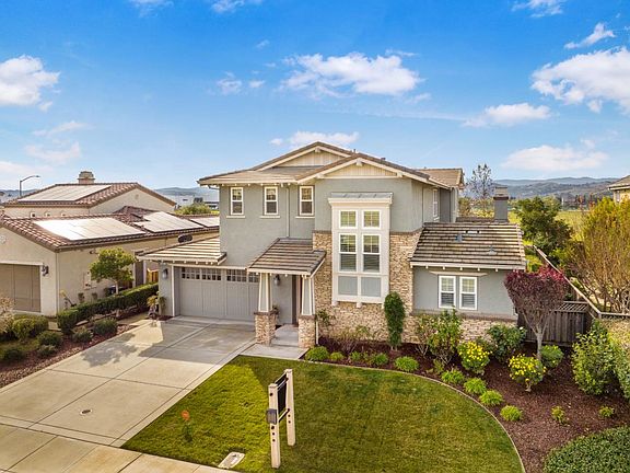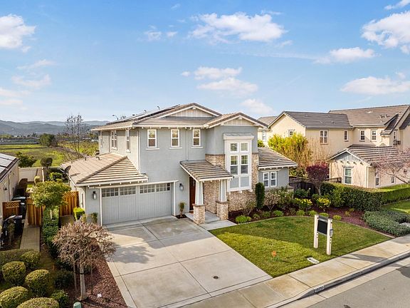 Welcome to 18251 Tolusa Place located in the prestigious neighborhood Terra Mia in Morgan Hill. This stunning former model home offers 4 bedrooms, 4 bathrooms, open loft / den (5th bedroom) and exquisite modern touches throughout. Stunning entry with floor to ceiling palace style wainscoting, plantation shutters, custom molding throughout, every detail exudes elegance. Separate Family Room boasts floor-to-ceiling windows, vaulted ceilings and a captivating fireplace with tile accent wall and custom cabinets. Formal Dining Room. Chefs kitchen is a culinary dream equipped with top of the line appliances, custom cabinetry, huge island w sink, quartz countertops, built in refrigerator w huge custom walk in pantry. Primary suite offers a shiplap ceiling, large walk-in closet and gorgeous marble bathroom w dual sinks, soaking tub and separate shower stall. Downstairs suite with full bath,OWNED SOLAR, Tesla Charger ,2 Car Garage, huge laundry room & hardwood floors. Surrounded by 3 parks, hiking and biking trails and top rated schools.Close proximity to 101 freeway and a short drive to our beautiful downtown with fine dining and shopping. This home is a true masterpiece, combining exquisite design, impeccable craftsmanship, and a prime location.
