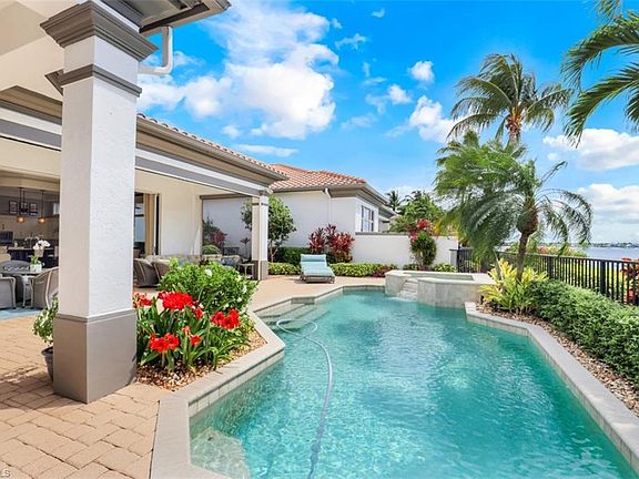 Stunning waterfront living! This beautifully updated home on the water is a harmonious synthesis of thoughtful design and refined amenities. Sophisticated elements and a contemporary flair create an elegant yet comfortable atmosphere throughout this exceptional 3-bedroom + den/home office, 3.5 baths residence with beach access boat slips available for lease. Miromar’s 700 acres of freshwater lakes. An inviting space for entertaining, the stylish covered lanai encloses a full outdoor kitchen with several outdoor seating options near the pool and spa and beach. The handsomely equipped indoor gourmet kitchen features a large updated breakfast bar. Bask in the serenity of evenings dining "al fresco” or entertain inside in the formal dining room and living room. The luxurious master suite is highlighted with a bay windowed sitting area overlooking the pool and water. Residents enjoy Five-Star resort facilities including infinity pool, tennis courts, championship golf course, gourmet restaurants and a full-service wellness spa. A full list of upgrades available,