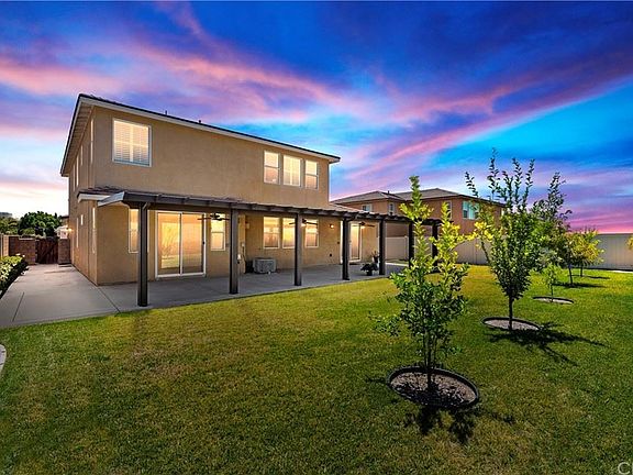 This property will not last! You will fall in love with this beautiful 4 bedroom, three and a quarter bath home located in the Orangecrest community of Riverside. This 3363 sq. ft home has a fresh coat of paint on the interior to welcome you in. As you enter the front door, plenty of natural light showcases the open floorplan. The main level features a den/ office room, a guest bedroom with ensuite bathroom, formal dining room, bathroom, huge walk in pantry, beautiful kitchen with dark wood cabinets and granite countertops, a large island and an eating area. Kick up your feet in the spacious livingroom with gas fireplace designed with a custom built in for all your storage needs. Three additional bedrooms are located upstairs along with a tech room, the laundry room, and plenty more custom built in cabinets. The master suite includes an ensuite bathroom with dual sinks, a vanity area, seperate shower and tub, his and hers walk in closets, and a custom built in wall unit. This backyard is ready for the next homeowner to relax or entertain under the alumawood patio cover with three ceilings fans with lights. There are six citrus trees for you to enjoy when it bear fruits. Other feature include a three car garage (side by side and a tandem).