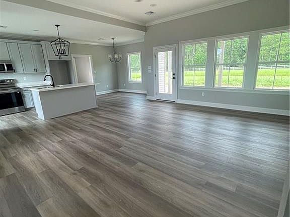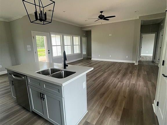 3 bed, 2 bath new construction in Wolf Lakes. Open floor plan, vinyl plank flooring, quartz countertops, 10 ft ceiling in living areas, custom tile walk in shower, extra green space on side of lot, no rear neighbors. Seller willing to pay up to $5,000 in closing cost!