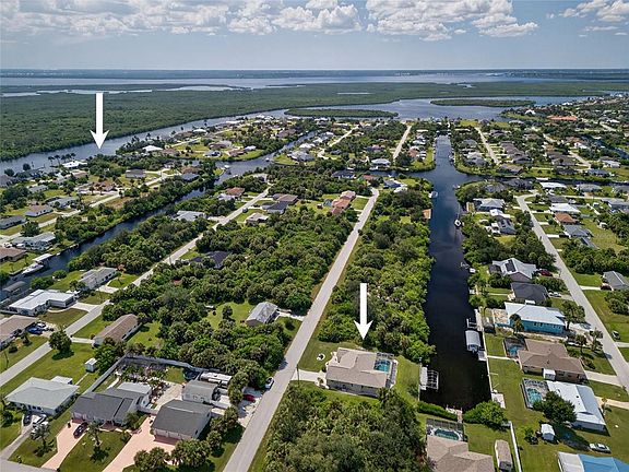 WATERFRONT 3 BEDROOM, 2 BATH, 2 CAR GARAGE, POOL HOME WITH SAILBOAT ACCESS TO CHARLOTTE HARBOR LEADING TO THE GULF! 80 FT OF WATER FRONTAGE, 38 FT TREX DOCK WITH WATER AND ELECTRIC PLUS 10,000 LB. LIFT. Recent updates include newer roof 2022, new exterior paint 2021, lanai resurfacing 2020 & new motors for boatlift 2025. Step inside through screened entryway, split floor plan with water views, high ceilings, and tile floors throughout. The kitchen offers ample cabinetry for storage, new stainless-steel appliances 2024, farmer sink and pass-through window overlooking the lanai and pool, and breakfast bar great for entertaining. Generous primary suite features access to lanai, his and her walk-in closets and private en-suite bath featuring a vanity and walk-in shower. Split floor plan provides guests with plenty of privacy with 2 additional bedrooms with walk-in closets and full guest with access to lanai. Additional features include inside laundry room with new washer and dryer 2024, new AC 2022, whole house water filter, whole house surge protector on main electric box, generator plug 2022, new garage door opener 2024, new pool water heater 2025, newer pool pump 2023, and self-cleaning pool system, private dock and boat slip, breathtaking water views—perfect for fishing or simply soaking in the beautiful surroundings. Outdoor entertaining area features covered lanai with heated screened pool including 40 ft. dock with Trex decking and boat lift. Located on a quiet street with no HOA close to Murdock restaurant and shopping district, schools, beautiful parks, golf and just a short 20-minute drive to downtown historic Punta Gorda with world-class fishing and boating, community events and entertainment and easy access to gulf beaches. Don't miss your chance to own this waterside treasure! Schedule your private showing today!