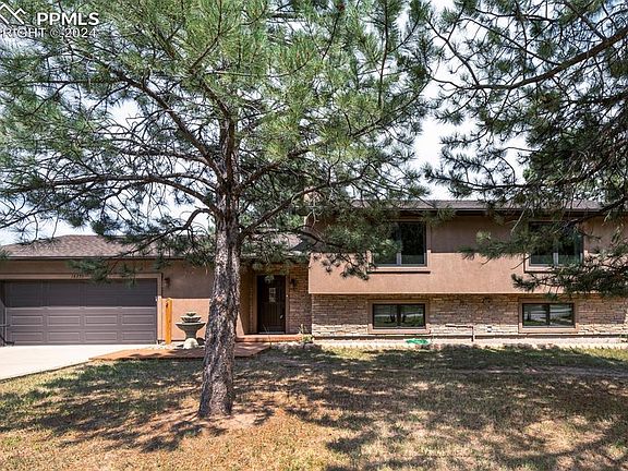 Nestled on a serene 1-acre lot surrounded by breathtaking scenery, this charming garden level home is the perfect sanctuary. With approximately 2,200 square feet of living space, plus an additional 1,364 square feet of garage and storage space, this property offers ample room for everyone to thrive. Enter front door to a mud room, and doors to lower deck and backyard. The home boasts 4 bedrooms, 2 bathrooms, and a beautifully finished basement that can serve as an in-law suite or potential rental space, complete with a separate back door entrance, kitchenette, and a luxurious walk-in jet bath with shower. Gather around the cozy woodburning fireplace upstairs or enjoy the warmth of the gas stove downstairs on chilly evenings. Sit up at the bar downstairs for a cocktail & watch the wildlife. Step outside and embrace the tranquility of your outdoor entertaining patio, surrounded by towering trees and majestic mountains. With an attached oversized 2-car garage, a spacious 4-car driveway, and an additional side driveway leading to a detached oversized 2-car garage, you'll have plenty of space for all your vehicles and toys. Room for RV parking, also. Two storage sheds, including one tall enough for kayaks, and a dog run with a doghouse complete this idyllic property, offering the perfect blend of comfort, convenience, and natural beauty. Surrounded by breathtaking scenery and an abundance of wildlife. If you're searching for a wonderful place to live, look no further than Monument, Colorado. This charming town offers a perfect balance of outdoor activities and a close-knit community feel. Monument also has a thriving local art scene, with the Gallery Center and various art festivals throughout the year providing a great way to explore creativity together. ** Note that Assessor's site shows only 3 bedrooms, plans are located on site and 4th bedroom has always been there.