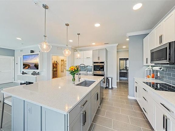 EVERYTHING is of high quality, built in, custom made and brand new. Entire unit COMPLETELY REMODELED, is less than 2 years old and lived in for less than 1 year. All living and wet areas have Bati Orient Italian porcelain tile while your master bathrooms vanity wall from floor to ceiling is designed with their Italian Mosaic Porcelain tile. You will immediately see the outstanding quality through and through. In your open kitchen you have an abundance of top-of-the-line custom cabinetry, double leveled cutlery drawer with top quality hardware throughout along with a gorgeous full specialty glassed door walk in pantry with all California Closet design and construction. Above your 8’+ long Cambria Quartz Island which sits upon “back-to-back” additional cabinetry is three large beautiful Kichler translucent seeded glass nickel finished pendants. Built-in top of the line Monogram "top compressor" SS refrigerator, DOUBLE WALL, YES TWO BUILT IN smart convection ovens, induction cooktop, a separate beer and wine refrigerator and Bosch’s best and quietest dishwasher. All base cabinetries are pull out drawers and shelves. Your living area comes with a full floating entertainment center as well as a 75” custom contemporary framed built in television also completed by California Closets.