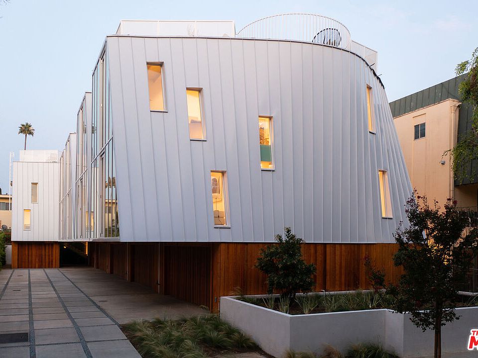 Homes for inspired living at the base of the Hollywood Hills. Canyon Homes is a communion of cutting-edge architectural design by Lorcan O'Herlihy Architects and striking modern interiors by DISC Interiors. Each of the five residences in this boutique community are comprised of unique, curving metal exteriors and custom 2-story curtain walls of glass with articulating panels on each level. Two bedroom plans ranging from 1,408 - 1,691 sf showcase undeniably Californian living spaces that celebrate natural and organic materials. Gascogne limestone flows through the vanity and shower in the primary bath. White oak flooring imported from Belgium complements vaulted ceilings and voluminous stairwells. Integrated kitchens feature custom milled cabinetry, Bosch appliance packages and honed marble counters and backsplash. The base of the homes, wrapped with planked cedar wood, house private garages plus office/flex space and laundry. Private roof decks showcase rows of swaying palm trees, downtown skyline, and the Hollywood sign. Set in Franklin Village, near Gelsons, The Oaks Gourmet, La Poubelle, and more. Plus quick access to Hollywood, Los Feliz, and Griffith Park.