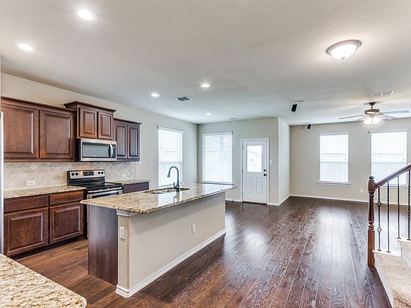 New windowsNew guttersNew refrigeratorTwo-car garageDark hardwood floorsExpansive front and backyardFour bedrooms