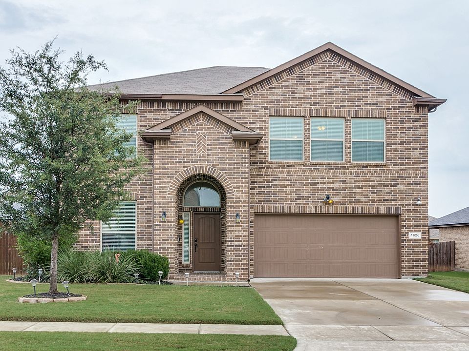 Welcome to this stunning two-story home on an oversized corner lot, located less than half a minute from the neighborhood lake and golf course. This home features a NEW ROOF, NEW WINDOWS, NEW GUTTERS, and a new refrigerator, all of which were installed in June 2025. It also includes four bedrooms, three and a half baths, two living areas, a study, and a two-car garage. The master suite is conveniently located downstairs and includes a walk-in closet, shower, and soaking tub. Upstairs, you'll find three additional bedrooms and two baths. The kitchen is equipped with granite countertops and an oversized pantry. The home has dark hardwood floors on the main level and carpet in the master and upstairs. The expansive front and backyard include a large 40x20 concrete patio and a pergola added in 2019, making it an ideal setting for entertaining guests!