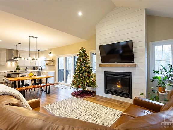 **OPEN HOUSE SUN DEC 10, FROM 2-4PM** Your dream homes awaits! Youll be wowed by the open concept layout and abundant natural light this home provides. Your chefs kitchen equipped with a walk-in pantry, sit-at island, and stainless steel appliances is a true delight. The dining room opens to a large deck, perfect for entertaining, while the living room offers a cozy gas fireplace. Discover three bedrooms and two bathrooms, including a primary bedroom with a walk-in closet and ensuite featuring a double sink, glass shower, and a luxurious free-standing tub. A mudroom with laundry and access to your double car garage adds convenience to daily life. The basement offers a family room, rec room/gym, two additional rooms for storage, a three-piece bathroom, and private staircase leading outside. Step into the backyard oasis with no rear neighbors on 1.28 acres with mature trees, trails, and your own private sauna. Experience a harmonious blend of comfort and style in this luxurious retreat!