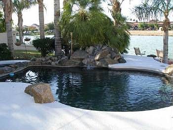 VAL VISTA LAKES WATERFRONT PROPERTY. This place shows like a million bucks.Beautiful new granite, appliances and cabinet finishes in kitchen.Updated master bath looks great.New cool deck surface around pool and patio. This home could be 4 bedrooms with addition of closet in den. Carpet and tile throughout home less than 2 years old and in excellent condition.New BBQ grill on back patio.New door hardware throughout home. Most of interior freshly painted with nice nuetral colors.Soft water system,upgraded 5'baseboards,dual pane windows,N.S exposure.This home sits on the big lake and has boat access to the clubhouse.HUGE lot with lots of grass, tropical pool area,boatdock<br/><br/>Listing Agent: Kaushik Sirkar