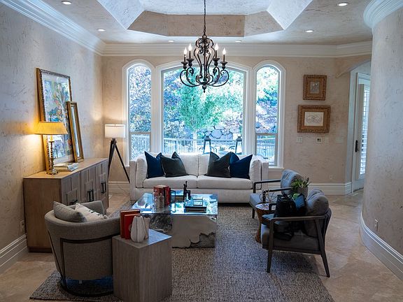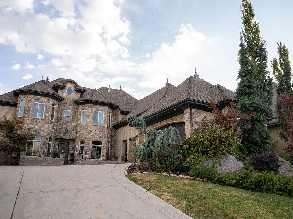 Significant price reduction on this French chalet-inspired luxury estate with private pool and stunning mountain views, offering over 8,000 square feet of refined living space. The stunning backyard is an entertainer's dream, featuring a gorgeous custom pool with built in rockslide, total privacy with breathtaking views of the Wasatch mountains. Inside, the expansive kitchen and family room boast massive windows that showcase the serene mountain landscape and beautifully designed outdoor oasis. The main floor also hosts a large office and a luxurious primary suite with plantation shutters leading to a covered patio. Upstairs includes a second bedroom suite, 2 additional bedrooms, 2 theater rooms, second office leading to a covered balcony. The large basement includes a kitchen, 2 family rooms, large game room/den, exercise/dance room, den/craft room, storage rooms, second large theater room, steam shower, and walkout covered patio. Located in one of Draper's most coveted luxury neighborhoods, this exclusive home offers a rare opportunity for elegant living with privacy and space. Move in ready in this highly desirable Draper neighborhood!