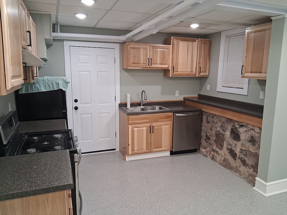 Includes utilities. New, cute, sunny, new Pella windows. Newly remodeled, lower level of triplex. One bedroom, office, bathroom with clawfoot tub & shower. Open space kitchen/living room with gas range and dishwasher.