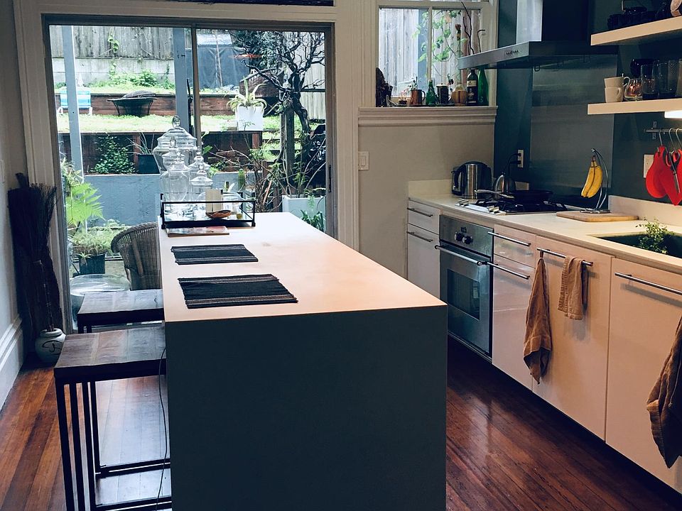 2 Bedroom, 1 Bathroom flat in a fully renovated Victorian 3 unit building. Period details throughout. A sleek modern kitchen with large island a large living room. Office area with desk. The bathroom has a full walk in shower with new stainless fixtures and tile. Washer/Dryer located in the flat. There is a good size backyard that the kitchen opens on to. 10' ceilings and a modern kitchenEasy access to Divisadero and Haight street shops/restaurants and Alamo Square. 4 blocks from the entrance to Golden Gate Park.