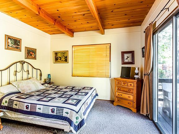 SITTING ON IRENE ST. IS A WARM, COZY, WELL MAINTAINED AND UPGRADED 2+ BEDROOM, 1 FULL & 1/2 BATH FULLY FURNISHED CUSTOM MOUNTAIN CABIN. IT HAS ALL THE CHARM OF A GETAWAY PLACE BUT WOULD BE A GREAT FULL TIME RESIDENCY AS WELL. OVERSIZED GARAGE HAS WORK SPACE BUILT IN AND ADJOINING ROOM FOR AN OFFICE OR CRAFT ROOM. SPRINKLERS ON ROOF OF CABIN AND GARAGE. FULLY UPGRADED KITCHEN WITH ALL BOSCH APPLIANCES. HUNDRED YEAR OLD TREES AND JUST ENOUGH YARD TO ENJOY THE WILDLIFE THAT WE HAVE HERE IN WRIGHTWOOD. ALL 3 DECKS ARE LARGE,COVERED AND FRESHLY STAINED. THERE IS SWAMP COOLER FOR THOSE FEW DAYS WRIGHTWOOD GETS EXTRA WARM. THE FRONT DECK IS INTIMATE ENOUGH FOR COFFEE IN THE MORNING AND LARGE ENOUGH FOR AN AFTERNOON GET TOGETHER. THE LOVE THAT HAS BEEN PUT INTO IT CLEARLY SHOWS. OWNERS ARE HAVING TO MOVE OUT OF STATE AND SELLING THIS IS A HEARTBREAK! THIS CABIN IS A MUST SEE!