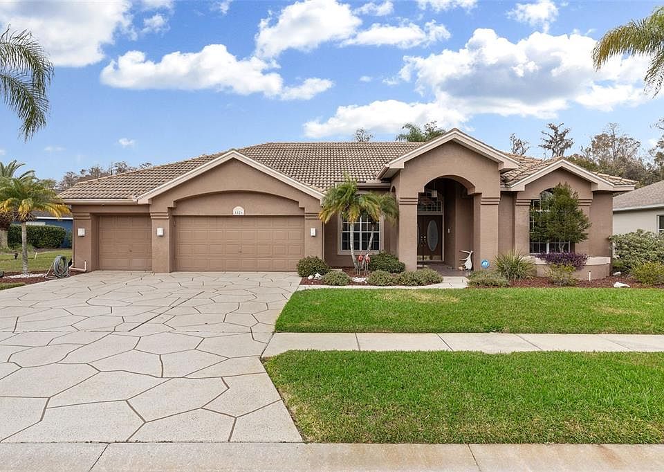 HUGE PRICE REDUCTION!!! Welcome Home! This Arthur Ruteneberg-built 4-bed, 3-bath marvel with an oversized 3-car garage is a true masterpiece! This centrally located home with conservation and pond views is nestled on over a quarter-acre lot. Immerse yourself in the open-concept kitchen, a culinary paradise adorned with 42” cabinets, top-tier stainless-steel appliances, tiled backsplash, granite countertops, and a spacious closet pantry. The newer laminate flooring and updated light fixtures create a stage for culinary creativity. A NEWER AC (2022), fresh interior paint, new ceiling fans, and updated pool decking ensure a worry-free experience. Turn the key and step into a life you've always dreamed of. The master bedroom is a haven of tranquility, featuring high ceilings, dual closets, and access to your private oasis through the oversized sliding doors. The ensuite bathroom is a spa-like retreat with a spacious walk-in shower, a large soaker tub, and dual vanities. This split-floor plan home welcomes sunshine, creating a cheerful ambiance throughout. Step outside to be amazed by the fully screened patio and beautiful pool – your personal invitation to bask in the glorious Florida weather. The outdoor kitchen makes poolside days even more delightful with beautiful and private conservation views. Located just minutes away from Starkey Trail, numerous pristine golf courses, Lake Tarpon, TOP-RATED schools, shopping, and award-winning restaurants. This home is NOT in a flood zone, has no CDD, and features a low annual HOA maintenance fee of $330. With 36 picturesque ponds, sprawling green spaces, a community park/playground, and a dedicated storage lot for your RV or boat Trinity Oaks is one of the most highly sought-after communities in all of Pasco County. Your journey to unmatched elegance and comfort begins here – make this dream home YOURS and schedule your private viewing today!