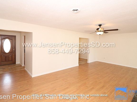 Updated 3 Bed, 2 Bath Home with 2-Car Garage, Central AC, and Large Yard - PLEASE READ ENTIRE DESCRIPTION BEFORE CALLING This 3 bedroom, 2 bathroom house is ready and available for move in. Located on the North side of Ramona, it is a short drive to Main St where there is shopping, restaurants, and entertainment. Highway 78 is close by for commuting to Escondido. The property has large front and back yards with open space and there is a storage shed in the back yard for residents to use. The two-car garage has the laundry machines and a few storage cabinets. The living room, kitchen, and dining room are near the garage with the bedrooms and bathrooms down the hallway on the other side of the house. Inside the house there is new vinyl plank flooring, new paint, and new blinds. Kitchen cabinets, range, microwave, and dishwasher are new. There is central heating and air conditioning along with a wood fireplace and ceiling fans to keep the home comfortable. Residents will be responsible for all utilities and services. The well supplies water for landscaping irrigation only. UNIT INFORMATION: Utilities: Residents are responsible for all utility accounts including electricity, water, trash, propane, and cable/internet. Parking/Storage: Attached 2-car garage for parking. Storage shed in the back yard. AC: Central AC and heat. Laundry: Laundry machines in the garage are provided for resident use. They will not be maintained. Pet Policy: Small pets of 25lbs or less allowed by approval. $50/mo rent increase per pet and a $500 security deposit increase. Please visit our website to view all the units, information, and the links referenced below. www(dot)JensenPropertiesSD(dot)com/available-properties SHOWINGS: Self-guided showings available after 9/2/20 with Tenant Turner. Contact Jensen Properties with your preferred date to make an appointment or submit a request at the link below. TO APPLY: All our applications are done online through our company website. Be sure to pay the $40 application fee when applying. Each person planning to live here that is over the age of 18 MUST submit an application for approval. REQUIREMENTS TO RENT: 1. Minimum household gross income of 2.8x the monthly rent. 2. A good credit score and clean history (625 minimum). 3. Proof of income to be able to rent. Income can include assistance such as food stamps, child support - call for clarification if necessary. 4. A Social Security Number (SSN) or Individual Taxpayer Identification Number (ITIN). 5. Valid, current, government issued Photo ID. 6. You must obtain or currently have and be willing to transfer renter's insurance. $40 Application fee is NOT refundable. Units are rented to the best qualified applicant when assessed using the requirements to rent. Conditional approval may be possible for people that do not meet all requirements. Applicants that do not meet all requirements will be subordinate to fully qualified applicants. Jensen Properties San Diego, Inc. CA DRE License #01902511 (RLNE6077045)