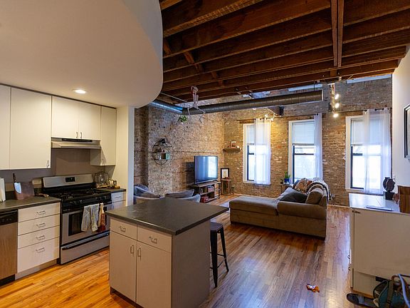 Welcome Home! This ultra-rare two story, 20ft ceiling, lofted unit is one-of-a-kind! Featuring exposed brick, natural wooden beams and tons of natural and located directly on Milwaukee Ave walking distance to the 606 Trail, Blue Line, and all that Bucktown & Wicker Park have to offer! There's simply nothing like this unit out there. Three large bedrooms with lots of closet space and storage throughout the unit, 2 full bathrooms, attached garage space, bike storage, etc. Available for November Lease Start! *Photos are from previous tenants - unit is currently empty*