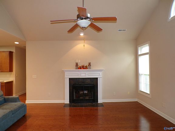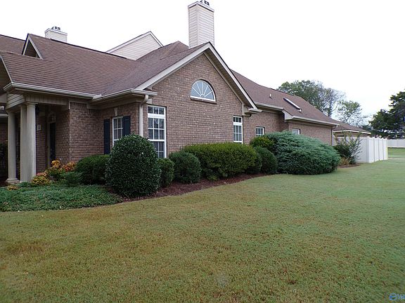 Carefree living in this 2 bedroom 2 bath one level Townhouse. HOA includes pool, clubhouse w fitness center, front & back yard maintenance. End unit provides more privacy and green space. This beautiful home offers an open floor plan. The living room has a vaulted ceiling, a wood burning fireplace, and wood floors. The spacious kitchen and dining room also have wood floors. The master bedroom is very spacious and also has a vaulted ceiling. It overlooks the privacy fenced backyard with a patio and a detached 2 car garage. So conveniently located between Madison and Huntsville off Hwy 72.