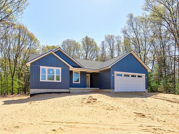 Experience serene living on 2.07 wooded acres in this stunning new ranch-style home! Enjoy vaulted ceilings and an open floor plan that connects the kitchen - with island and pantry - to the dining and family rooms. Step onto the back deck from the dining area and take in the peaceful wooded views. The main floor features a spacious primary suite with double sinks and a walk-in closet with wood shelves. Main floor also has 2 more bedrooms and 1 full bathroom. Laundry room right next to the mud room access. The wide-open daylight basement offers endless potential to expand your living space. A perfect blend of comfort and nature! Move in this Summer!!