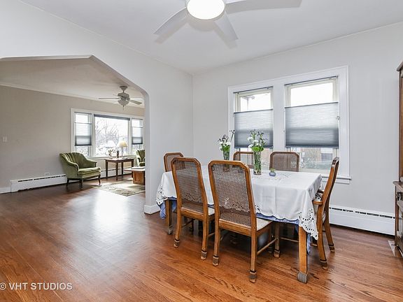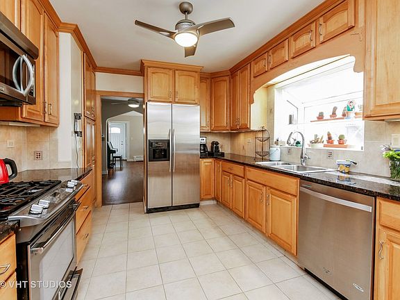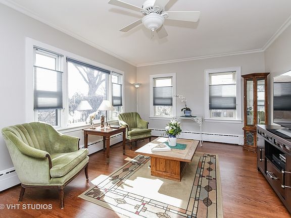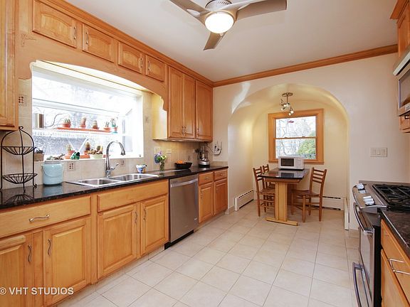 Vintage 1930's stucco home in fantastic location across from Sunset Park. Remodeled kitchen with granite counters, adorable breakfast nook with built-in table, pantry closet, and garden window. Expansive loft area on second floor includes new carpeting and newer skylight window that opens and has built-in movable blind. Many other updates including: newly refinished hardwoods, fresh paint, water heater, chimney liner, newer windows, boiler, sump pump and backup, French drain, asphalt driveway with brick-paver edging, updated bathroom, and newer sewer line. Former coal bin converted into great storage room. Fenced yard with perennial garden. Second bathroom in full basement. Plenty of storage and lots of charm. Walk to town where you'll find restaurants, theater, and all kinds of shops and businesses. Easy access to expressway too.