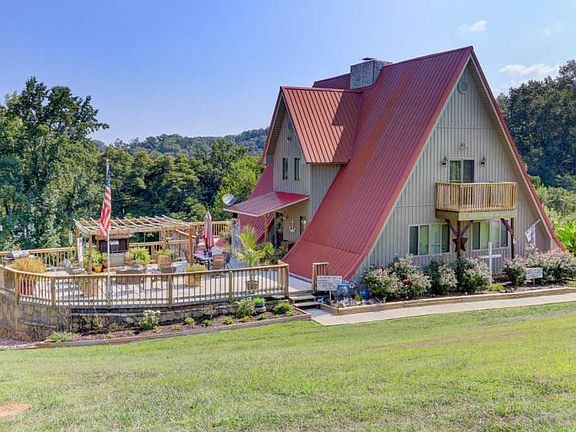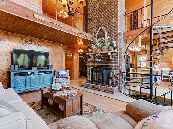 Gorgeous updated home boasts lake living with breathtaking lake and mountain views! This 4 bedroom, 3 bathroom home features cathedral ceilings, oversized windows to show off lake views, floor to ceiling brick fireplace (gas logs), updated bathrooms, new kitchen appliances, a 4 car garage, newer vinyl siding, newer windows, new sliding glass doors, new deck, and a new water softener system. Large balcony overlooks lake and wraps around the home to join side patio with pergola and fountain. Perfect for entertaining! This home offers lake and mountain views year round!