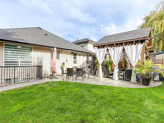 Cloverwoods rancher with a full basement. Custom built with a great room style with soaring ceilings. 3 bedrooms on the same floor plus a flex room as a den. Primary suite has a luxurious 5 pc. ensuite. Basement has a second kitchen and three bedrooms. The very private back yard on this spacious property has a beautiful pergola and stamped concrete patio perfect for outdoor barbecues. This home has a newer roof gutters and paint from a few years. Walking distance to Adams Road Elementary school and the new skytrain. Upscale neighborhood of fine homes.