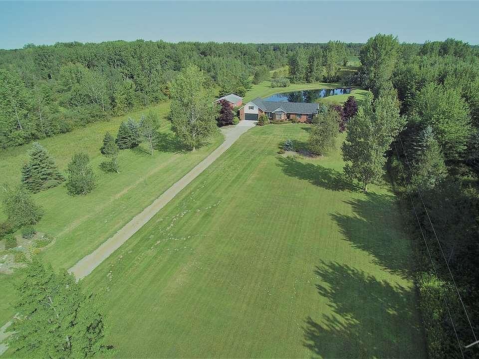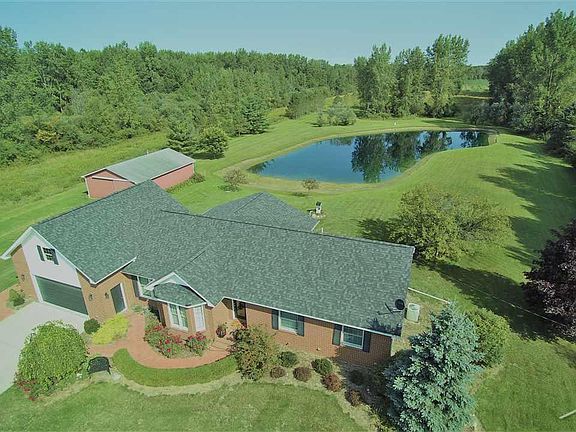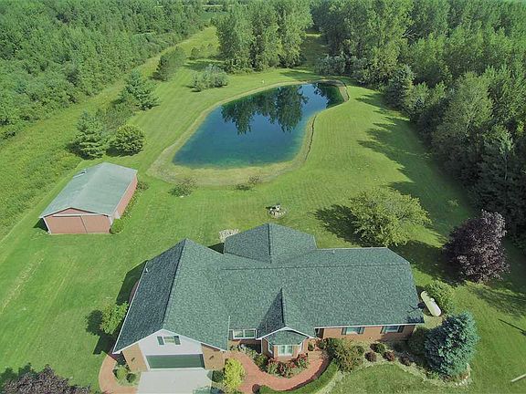 Spacious and serene, this 3 bedroom, 2 1/2 bathroom home is situated on just over 10 acres and will leave you breathless! Step inside and enjoy the views of your private, 1/2 acre pond which is stocked with perch and bass! Very private location with nature surround. This home features cherry cabinetry, maple hardwood floors, quartz counter tops in bathrooms, first floor laundry, and a walk-out basement. Roof is under warranty until 2028.
