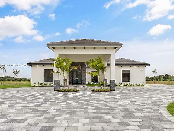 Beautiful 5 bedrooms, 3.5 baths, 3 car garage home with port cochere & circular driveway on a 1 acre estate. Home includes 17x32 pool & a 7x7 jacuzzi. Impact windows & doors, floor to ceiling windows in family room, 32x32 porcelain tile floors throughout the home. Quartz countertop in kitchen with waterfall counter & matching quartz countertops in bathrooms. This gem is located in the Redland's area in Miami Dade County. When you first pull in you see a huge port cochere & huge circular driveway. As you walk through homes entrance you will notice a grand open concept floorplan, an island kitchen of your dreams which is spacious & features wood cabinetry with self closing drawers. Covered terrace and plenty of land for you & your family to enjoy.