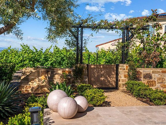 La Dolce Vita...a farm to table property in Cielo! Perched on a coveted view lot in the gated community of Cielo, this custom built home is a perfect blend of quality craftsmanship and relaxed California living. With 180 degree panoramic views stretching from the Pacific Ocean to the snow-dusted mountains, the setting is both private and breathtaking. Designed for those who appreciate quality and tranquility, the home sits on an expansive lot offering an unique opportunity to build a detached Casita or ADU (currently a producing vineyard). Sellers will convey recent HOA approved plans for a stunning pool, spa and entertainment area, which can be implemented immediately for construction. Inside, the residence unfolds with a warm, light-filled, open-concept floor plan allowing for seamless living from one space to the next, blending a warm craftsman contemporary style. At the heart of the home is a chef’s dream kitchen—appointed with multiple premium Viking appliances, back kitchen and pantry, leathered Taj Mahal quartzite dual islands which can accommodate over 20 guests for dining and a temperature controlled wine cellar. The primary suite located on the second floor, takes in sweeping coastal and mountain views, additional (4) guest rooms are all en-suite and anchored by a upstairs game or media room for the entire family to enjoy. La Dolce Vita...a farm to table property in Cielo! Perched on a coveted view lot in the gated community of Cielo, this custom home is a perfect blend of quality craftsmanship and relaxed California living. With 180 degree panoramic views stretching from the Pacific Ocean to the snow-dusted mountains, the setting is both private and breathtaking. Designed for those who appreciate quality and tranquility, the home sits on an expansive lot offering an unique opportunity to build a detached Casita or ADU (currently a producing vineyard). Sellers will convey recent HOA approved plans for a stunning pool & spa, shovel ready. Inside, the residence unfolds with a warm, light-filled, open-concept floor plan allowing for seamless living from one space to the next, blending a warm craftsman contemporary style. At the heart of the home is a chef’s dream kitchen—appointed with multiple premium Viking appliances, back kitchen and pantry, leathered Taj Mahal quartzite dual islands which can accommodate over 20 guests for dining and a temperature controlled wine cellar. The primary suite located on the second floor, takes in sweeping coastal and mountain views, additional (4) guest rooms are all en-suite and anchored by a upstairs game or media room for the entire family to enjoy. Step outside and take in the golden hour from one of the many outdoor living areas. Whether hosting guests for al fresco dinners or enjoying quiet moments beneath the stars, this property was made for indoor-outdoor living. Featuring a trellised dining area with raised vegetable garden boxes, outdoor loggia with fireplace and a private vineyard to produce your own boutique Pinot Noir. Cielo residents enjoy access to resort-style amenities including a fully equipped fitness center, clubhouses, tennis and pickleball courts, playgrounds, and sports courts. Community events throughout the year create a lively, connected lifestyle. This is an accredited Fire Safety and Shelter in Place community with its own Fire Department and emergency equipment on property, combining safety and luxury at all times.