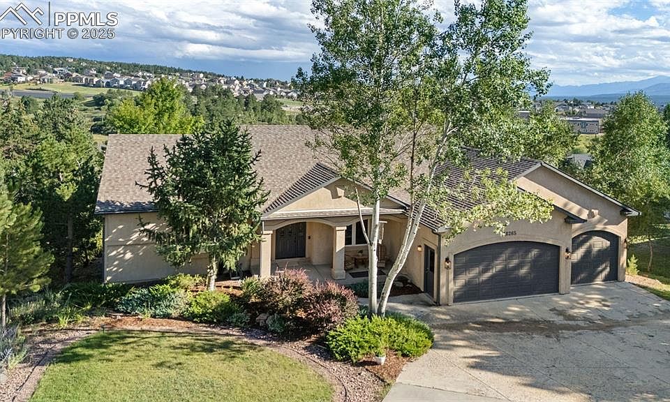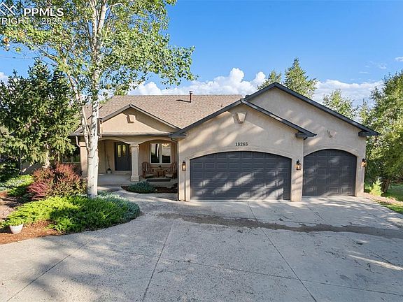 Rocky Mountain Living in Harmon Hills of Woodmoor This ranch style home with full walkout basement sits on .5 acres and is all about the VIEWS. 4 bedrooms plus an office, 3 baths and a 3 car garage! The front porch welcomes you home. This amazing floorplan begins with the foyer flanked by the office and formal dining leads and leads to the bright open family room, kitchen and breakfast room space. Vaulted ceilings, a wall of windows and upper deck access with great views of the Peak create that relaxing Colorado vibe. The Owners Retreat continues the feel with all of the windows welcoming wooded views and lots of natural light. An En-suite bath includes separate vanities, bath and shower and a generous walk-in closet. Also on the main level is a powder room for guests Heading downstairs you’ll find the perfect entertaining space filled with natural light and an open feel due to the tall ceilings and many windows There’s a wet bar, 2nd fireplace and glass doors to the oversized patio. PLUS 3 good sized bedrooms with large closets and a full bathroom. Storage galore-3 extra closets and an unfinished equipment room allow plenty of room for everyone and everything. The entire lot was landscaped Colorado style - from the Aspen trees to the tiered rock hardscaping, designed to optimize the beautiful surroundings and provide privacy. Quality of construction, the wonderful open floorplan and IMMACULATE condition distinguish this home. Great bones make it easy for buyers to customize to their own taste Award -winning school district: Lewis-Palmer schools (Elementary & Middle) within walking distance and Palmer Ridge High just over a mile away. It's also the perfect distance to the popular downtown Monument, the United States Air Force Academy, the new Ford Amphitheater, and Monument Lake. If you’ve been searching for a home with Colorado feel and views, open design, and school excellence converge, this is the ONE!