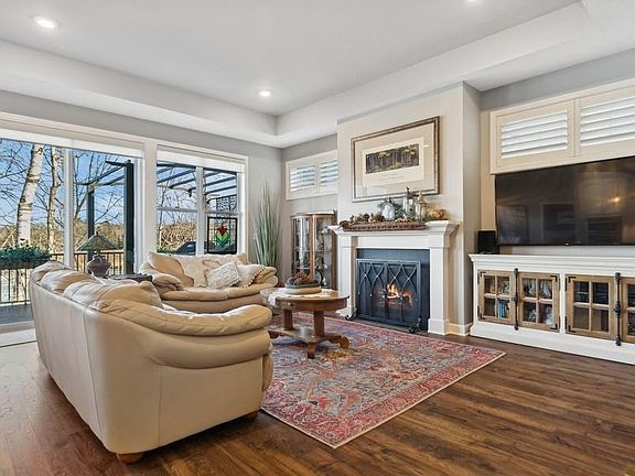 Newer beautiful detached home with walk-out level overlooking views of nature pond. Quality JMS built and great location, close to shopping, Lifetime fitness & convenient accessibility to main arteries. Enter foyer & desirable floorplan w/ main floor office & two bedrooms on main level. Primary ensuite w/ tray vault ceiling is spacious w/ 2 feet added on. Heated floor in primary bathroom. Dual sinks, soaking tub, separate shower w/ bench and built-ins in primary closet. 10 foot ceilings in Gourmet kitchen/dining & great room w/ gas fireplace overlooking nature pond at it's best. Huge center island, designer fan hood exhaust over 4 burner gas stove, pantry. Soft close drawers. Oversized main floor laundry enters into garage extended w/ 8 extra feet. Custom window treatments thru-out including plantation shutters. Stunning staircase & railing leads to lower level walk-out all with heated floors. Two additional bedrooms w/walk-in closets & 3/4 bath. Area is plumbed for wet bar. So much storage in unfinished room. Concrete patio is wired for hot tub. Garage is oversized with epoxy floor & drain.