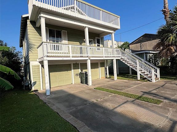 Enjoy island life in this home which offers two bedrooms, one full bath on the main floor and a third bedroom, office or crafts room with a half bath in the loft area upstairs. The original hardwood floors shine in the living room and bedrooms. The spacious kitchen has room for a breakfast bar or a cozy booth in the corner. High ceilings downstairs and oversized windows allow for natural light throughout the day. Enjoy your morning coffee on the covered front porch or relax with a cold beverage after a long day. Oversized two car garage with space for a workshop. Centrally located near grocery stores, restaurants, shopping and Moody Gardens. The beach is about 1/2 a mile away, bike or walk to the beach. Easy access to I-45 as well. Check this one out today.