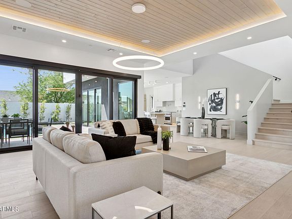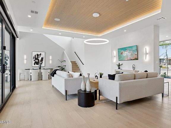 Welcome Home. This spectacular Blue Sky Home, Luxe Design, is a generous 3,883 sf, comprised of a thoughtfully designed floor plan offering 4 bedrooms, 3.5 bathrooms, plus loft. The European designed kitchen is dressed with an abundance of structured natural oak cabinetry, clean lined stone countertops, 48'' gas, double oven, Wolf range and Subzero refrigerator/freezer. The large primary suite is split from the other rooms (downstairs), and with the spa like bath, large walk in closet, and floor to ceiling glass makes for a private oasis to rest after a long day. You'll be captivated by the thoughtful architectural approach, artistic modern interior design, and amenitized features such as smart home system, wet bar, fireplaces in primary and family rooms, abundant storage, 3 car garage, 220v for EV charging install, and epoxied floor. The location and home are designed for a lifestyle conscious owner. For the adventurer you gain direct access to trail run, hike, or mountain bike the Phoenix Preserve or Piestewa Peak. Enjoy bike rides to the Farmers Market, walks to Uptowns iconic restaurants such as Luci's, Richardsons, and the Rokerji, or a quick 10 minute drive to downtown Phoenix for convenient airport access, concerts, sporting events, Phoenix Art Museum, or a 3 minutes joint to access the highway for a day trip north to Sedona to beat the heat.